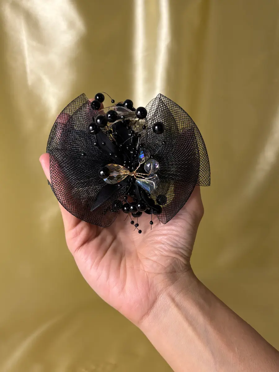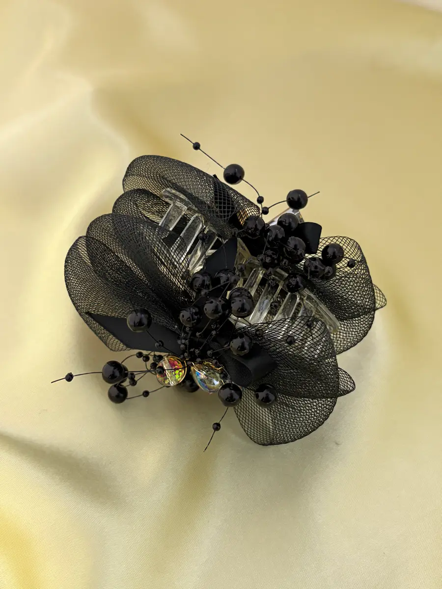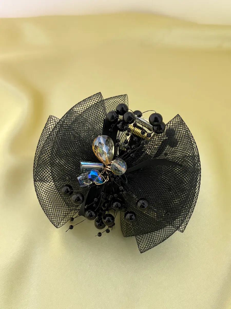 - Graceful black claw clip with layered mesh detailing