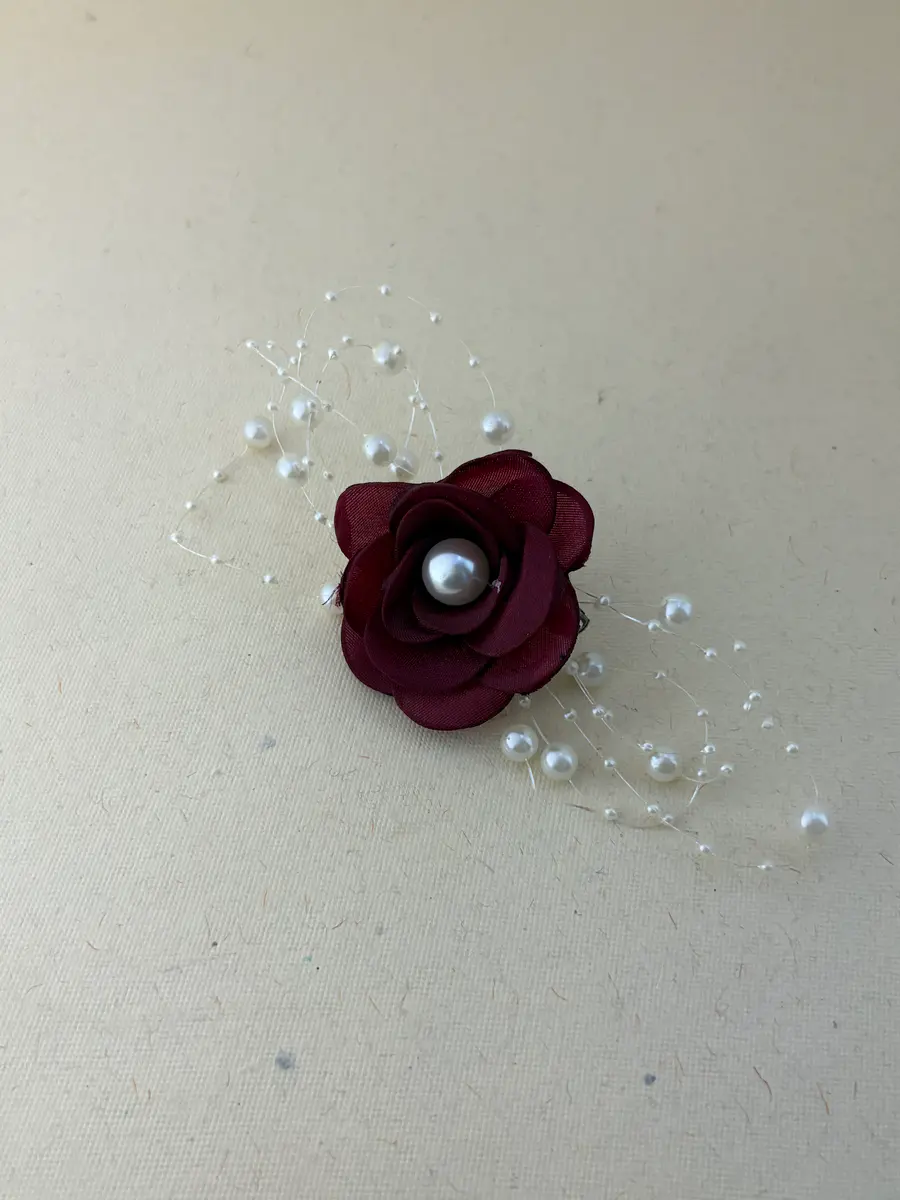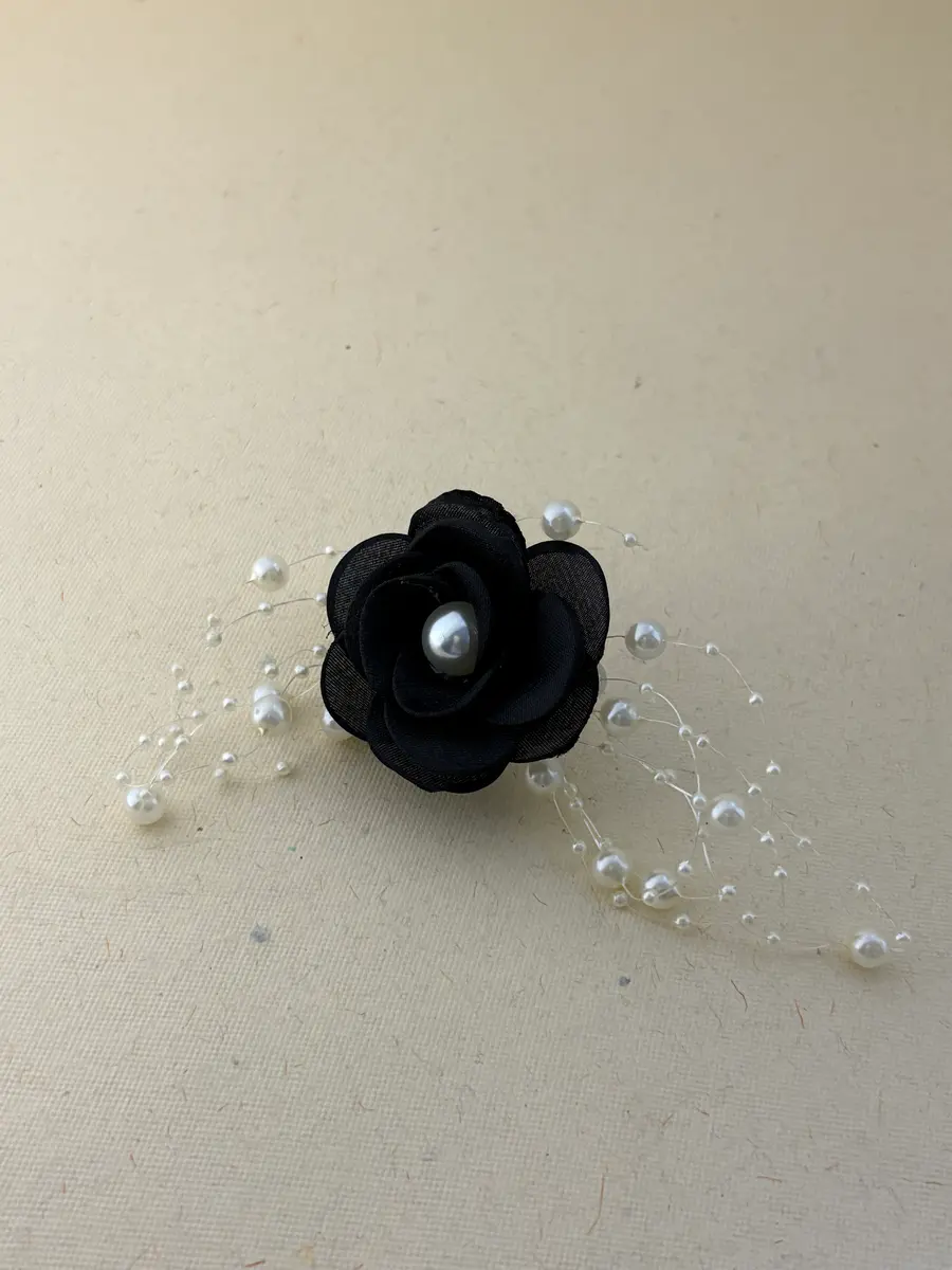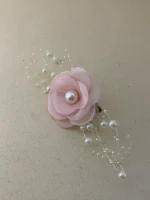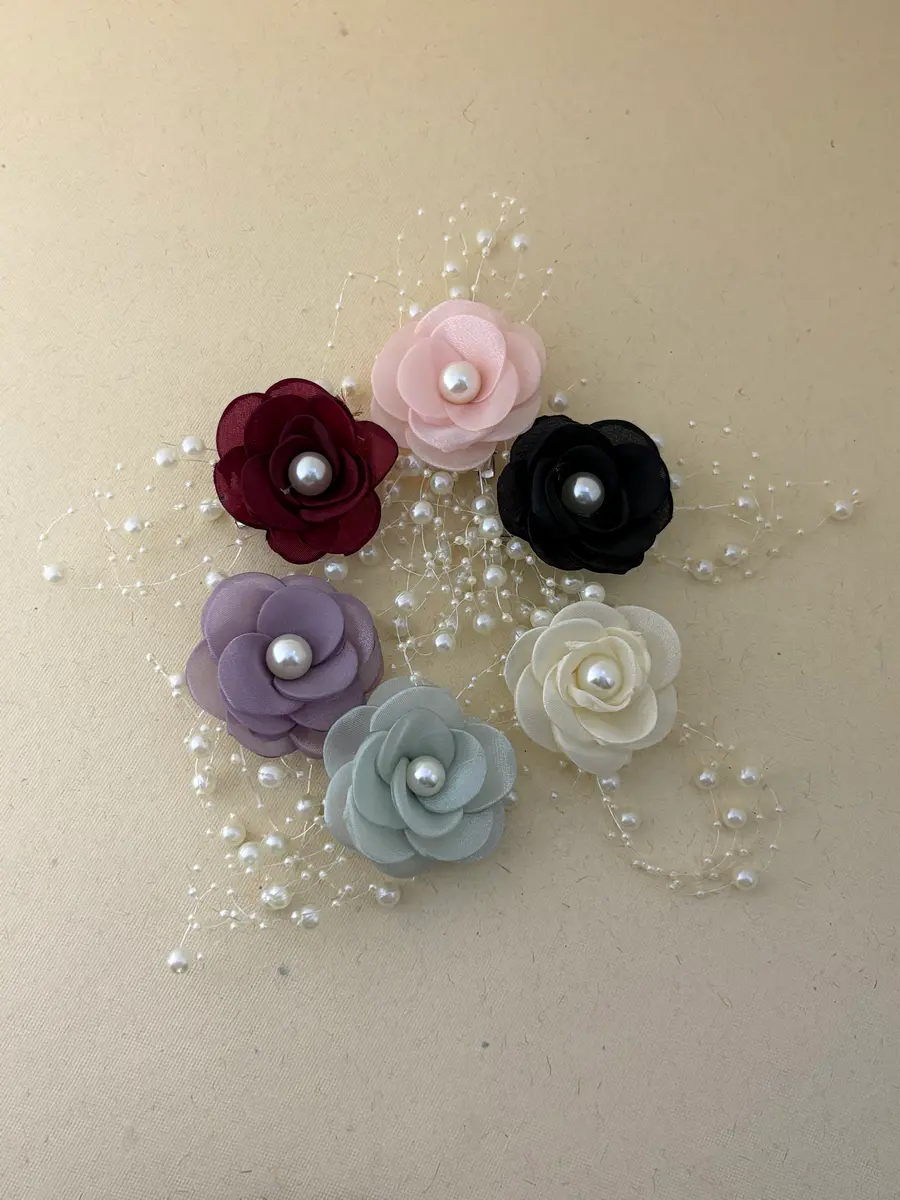 - Crafted from soft cloth petals with delicate bead embellishments