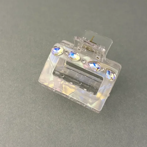 Crystal Edge Square Hair Clip- Fancy Hair Accessory – White