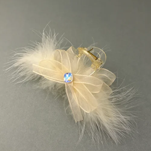 Royal Feathers Hair Clip – fancy hair accessory, party Hair Accessory – Ivory