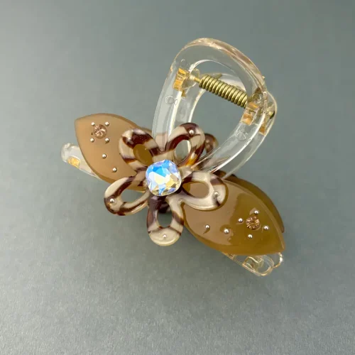 Crystal Petal Bloom Clip – Fancy Hair Accessory – Brown