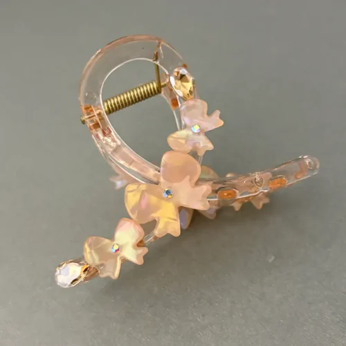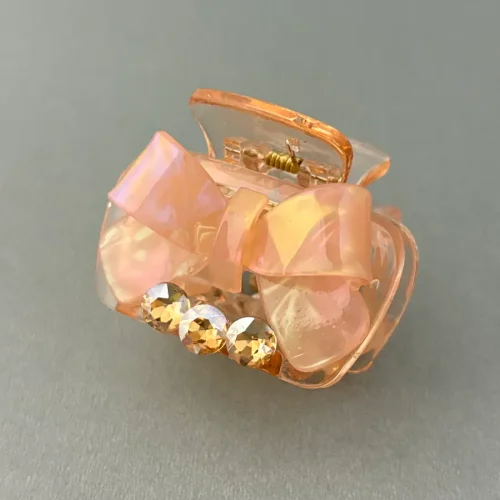 Crystal Bow Hair Clip- Everyday Hair Accessory – Peach