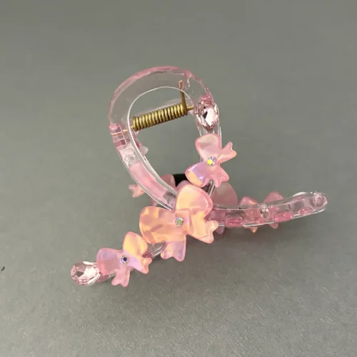 Glossy Floral Claw Clip – Beaded Statement Hair Accessory – Baby pink