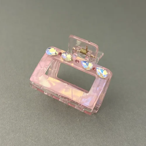 Crystal Edge Square Hair Clip- Fancy Hair Accessory – Baby pink
