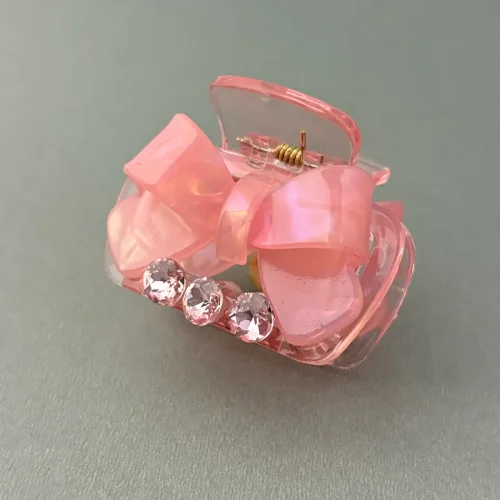 Crystal Bow Hair Clip- Everyday Hair Accessory – Pink