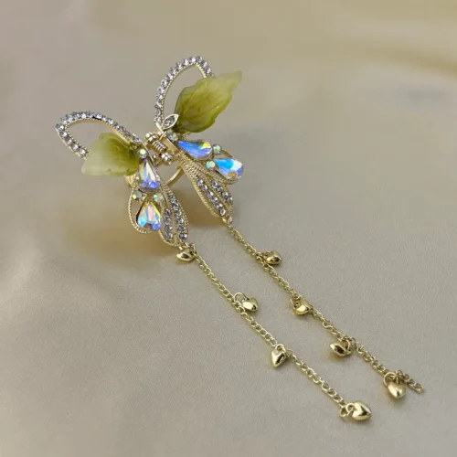 Crystal Butterfly Claw – Diamond & Beaded Hair Accessory – Green